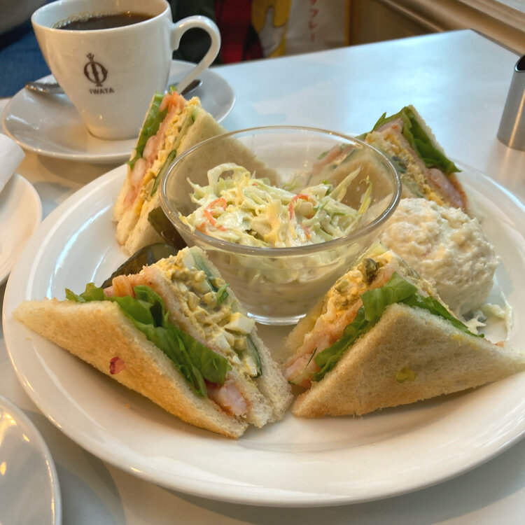 * イワタコーヒー店 * そろそろ帰ろうかと通りがかった時に 「もしかして、今なら待たずに入れそう〜✌︎」 と、いう事で夕飯にするつもりで入店。 またしても食べ過ぎ笑笑 お目当てはもちろんホットケーキ シェアをしようとエビタルタルサンドも エビタルタルサンドはコールスローやポテサラ 大きめのピクルスが付いていて満足度高い! そして、焼き上がるまで30分位かかるホットケーキは想像以上に分厚くて驚き。 表面はサクサクして中はカステラみたいな感じ! このサクサクが美味しいんだなぁ〜♡ 鎌倉に行ったら是非行きたいお店の一つだったイワタコーヒー。 コーヒーも美味しかったし、昭和っぽい雰囲気の店内も落ち着く 他のメニューも魅力的だったのでまた行こう🎵 #イワタコーヒー #ホットケーキ #サンドイッチ #鎌倉 #小町通り #百名店 #開運旅