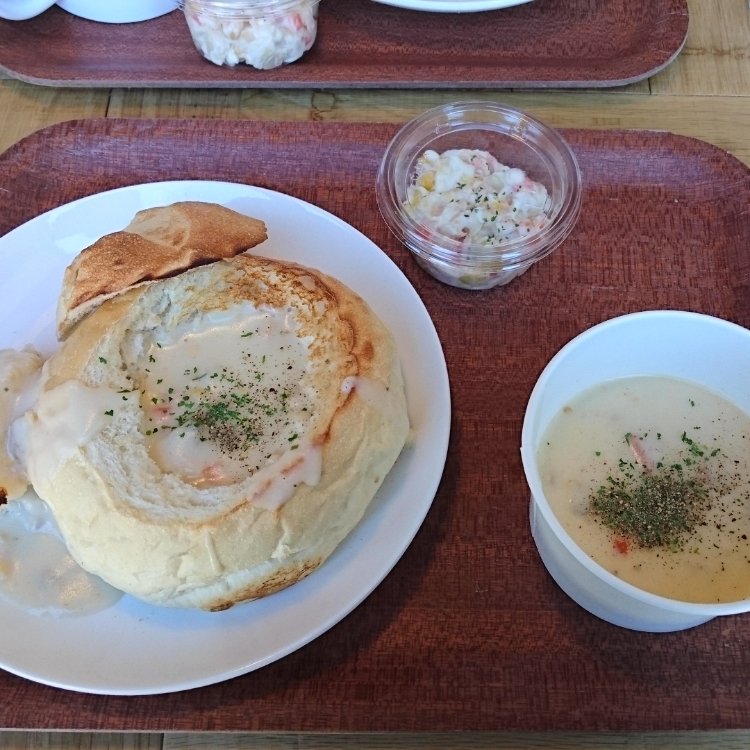 カフェで買ったパンを食べることも可能でかわいいお皿に温めて出してくださります🥖✨