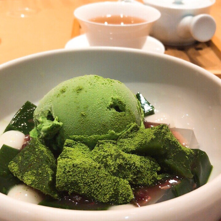 抹茶わらび餅入りのあんみつ 満足感もたっぷりです #和スイーツ