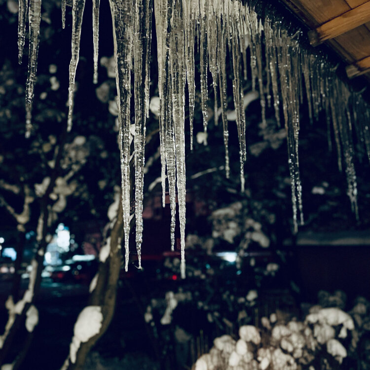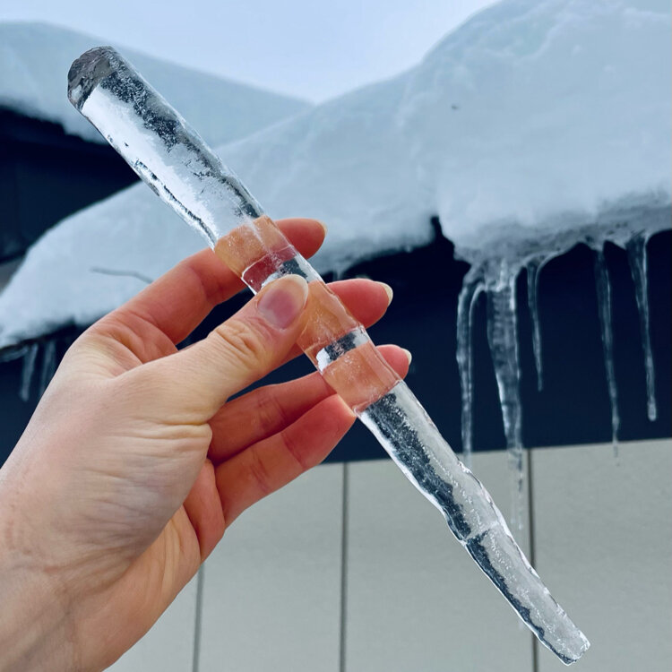 𖡺❅.↟⍋↟.❅𖡺冬の山形旅㉑𖡺❅.↟⍋↟.❅𖡺 ---❅番外編)氷柱❅--- たびやかた嵐の湯の玄関にも立派なツララがあって、やっぱり触りたくなっちゃいました…(笑) 美しい透明な氷…でも、冷たいです、当たり前だけど。冬の山形、満喫しました♡ #山形#天童#東根#東北#雪景色#氷柱#ツララ#つらら