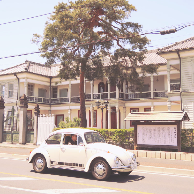 あまねさん おはようございます😃 写真撮ってたらちょうど素敵なビートルが 建物にマッチしてました(^O^)/