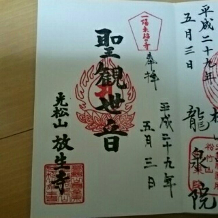 20170503 ⑪放正寺 御朱印です。以前、穴八幡宮には伺ったのですが対のこちらには伺えませんでしたので:( ;˙꒳˙;):💦 一陽来福はスタンプですが、揃いました✨