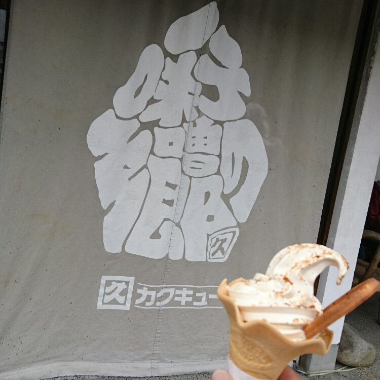 カクキュー直営のフードコート『岡崎カクキュー八丁村』で味噌ソフトクリームの八丁味噌パウダーがけ。