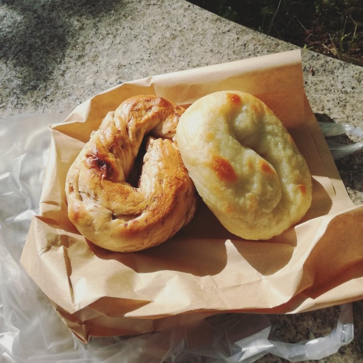 #ベーグル#モーニング#朝時間#新緑#青空#木漏れ日#白金高輪#muuの白金散歩#muuのパン時間