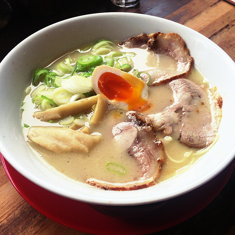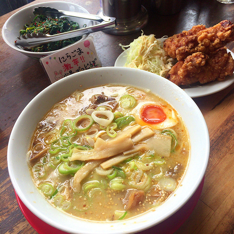 行ったのがGWということもあり、1時間ちょい待ってありつけた数量限定の“スジラーメン(味玉半分こ乗せ)”と、名物だとウワサの唐揚げをセットで\(//∇//)\