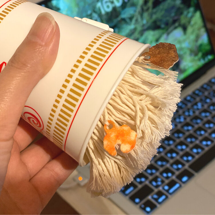 やらかしてる!と見せかけて ちゃんと掃除してるハンディモップ。 🍜 最後の画像は旦那さんのPCに仕込んだもの。 やらかしてる!と思わせるために 割り箸も置いてみました。 ✒︎ 日清オンラインストアで福袋を買ったらもらえます。 カップ麺、年に1回くらいしか食べないのに、 山のような日清食品‥。 でもどうしてもこれが欲しかった。 #日清#日清食品#NISSIN#カップヌードル