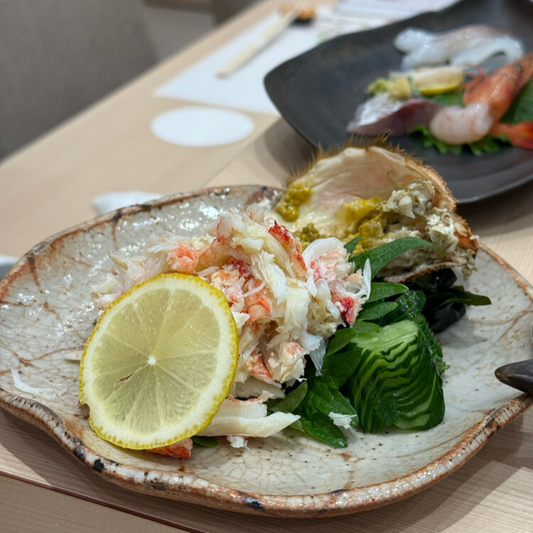 鮨 かた山 先日初めて伺ったお寿司屋さん とっても感じの良い美味しいお寿司屋さんでした🍣 大将に見繕っていただいたお造りからはじまり これまたほぐしていただいており、いただくだけの蟹‼️🦀 これが美味しくて💓 のど黒の塩焼きも微妙でした
