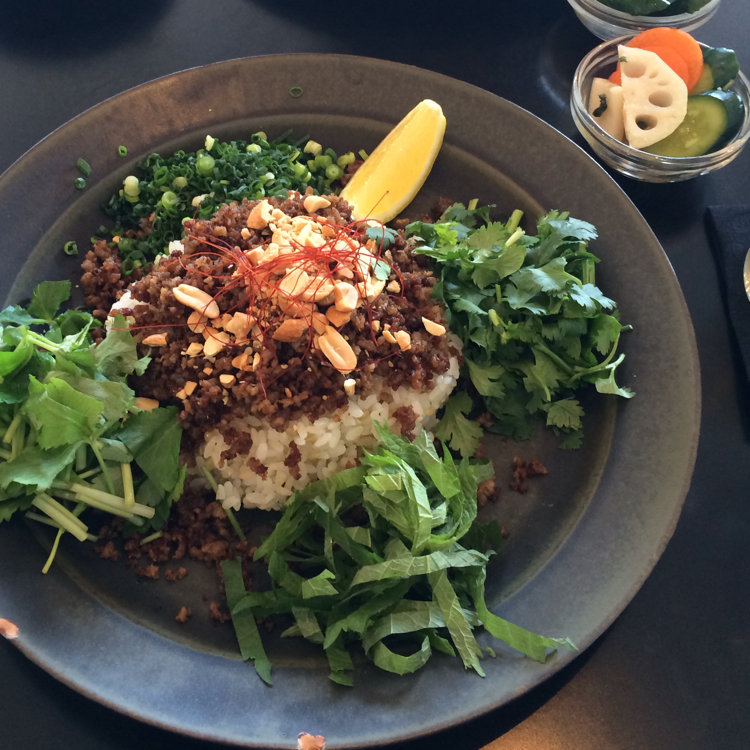 OXYMORON エスニックそぼろカリー。薬味がたっぷり効いてておいしいです。 お皿もかわいい♡