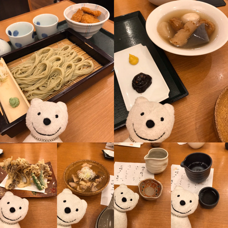 クマ散歩:越後長岡 小嶋屋で品行方正なクマは、名物へぎそばとタレかつ丼(小)セット、麒麟山、舞茸の天ぷら、モツ煮、おでん&久保田千寿の新潟の夕べ The Bear had a drink in the evening with Meibutsu Hegi Sobd and Tare Katsudon Fried Pork Cutlet Rice Bowl S Combo, Kirinzan Sake, Maitake Mushroom Tempura, Simmered Giblets, Oden Stew & Kubota Senjyu Sake at Echigo Nagaoka Kojimaya, CoCoLo Niigata!♪☆(*^o^*)