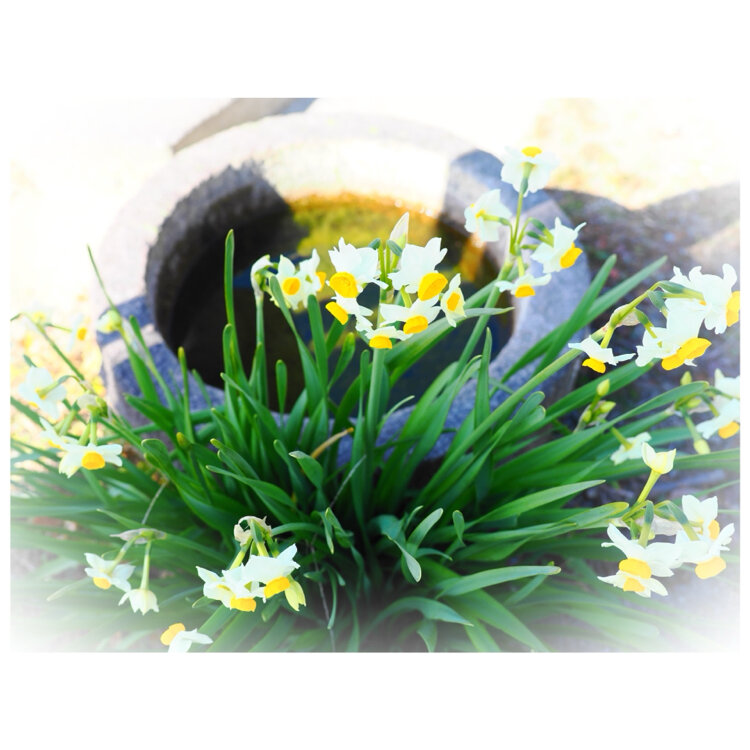 🌼✨🕊️水仙日和🌼般若寺˙✧˖° 🍋☁️ ⋆。˚ キラキラ水仙グラス✨✨ 本堂の前に、お花の活けられた小さなグラスが並べられています。 般若寺のお楽しみです🌼 般若寺 #開運旅 #般若寺 #奈良 #奈良旅 #奈良観光 #水仙 #水仙の花 #花のある風景 #春の奈良 #奈良散策 #寺院巡り #十三重石塔 #ことりっぷ奈良 #水仙グラス
