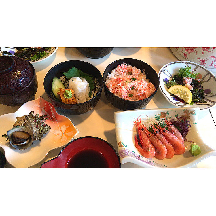 角島バスハイク お昼は海鮮村北長門にて二色丼 甘エビ、サザエつぼ焼きも付いてました! 海産物やお菓子のお土産が売ってる広い売店あります。 #バスハイク#山口県