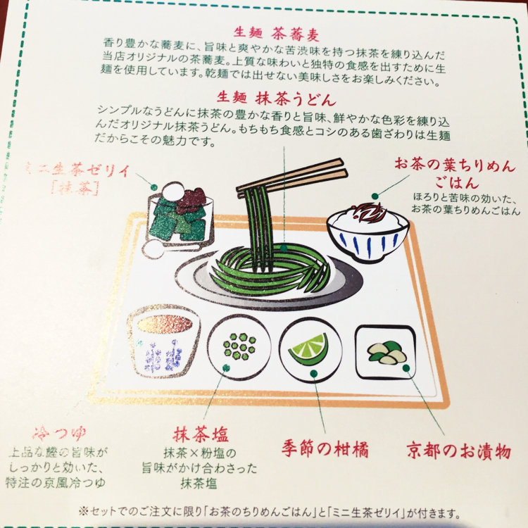 京都の人気店 中村藤吉が銀座シックスに✴︎ 茶そばセットの内訳はこんな感じ 食べ方の指南もあって楽しい^_^