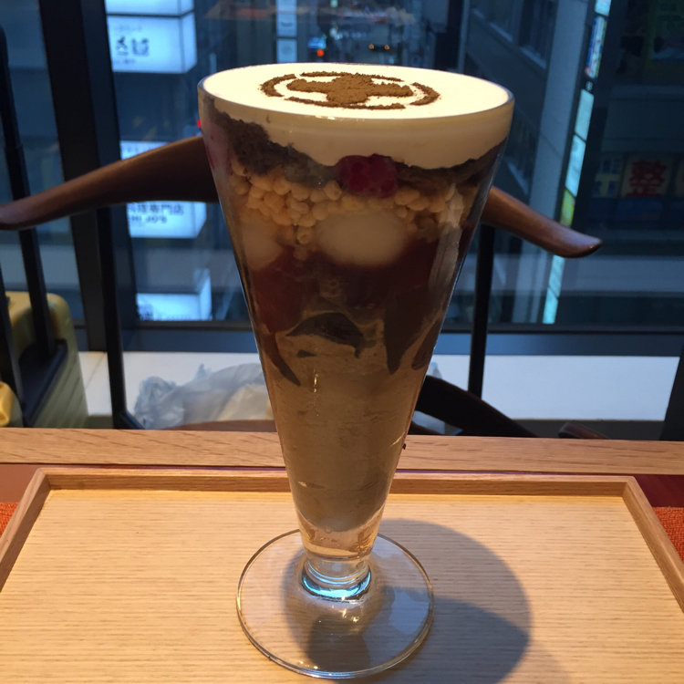 京都の人気店 中村藤吉が銀座シックスに✴︎ ほうじ茶パフェ^_^ゼリーやあんこなど本格的で美味^_^抹茶パフェよりほうじ茶パフェ派です❤️
