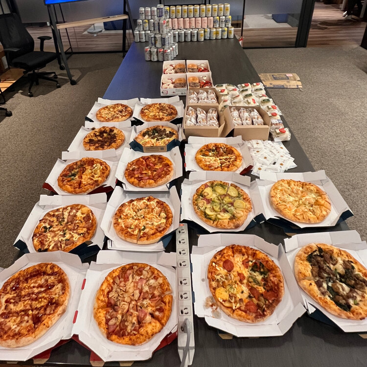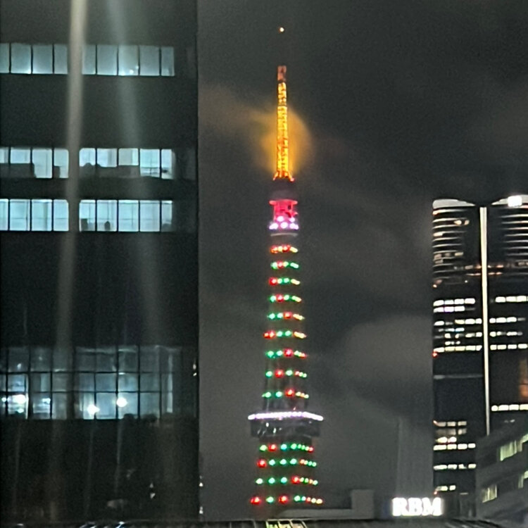 🎄Merry Xmas🎅 会社の所属事業本部の納会でした❣️ 幹事に任命されて🍩🍔手配もしました😃 ⚫︎クリスピー・クリーム・ドーナツのホリデーダズン🍩 ⚫︎まい泉のミニバーガー🍔 ⚫︎ドミノピザ ⚫︎アルコール ⚫︎ノンアルコール 皆んなで乾杯して喜んでもらえて嬉しかったです😊 終了後まだまだお仕事😭 でも帰りに🎄カラーの東京タワーに癒されて帰りました🗼 私の仕事納めは本日26日です💪👩🏻 2025/12/25