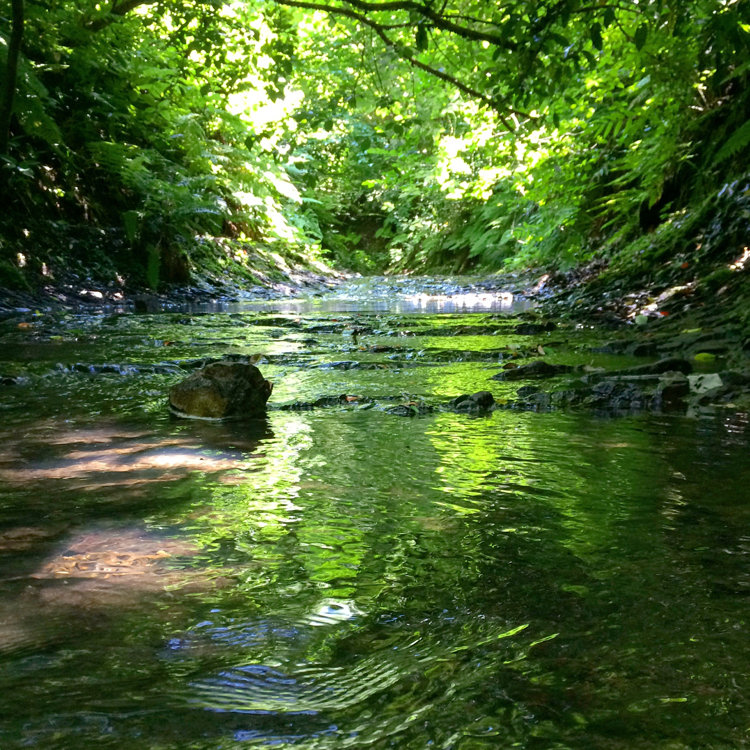 『うなぎ淵伝説』 。新緑美しい葉山 森戸川。