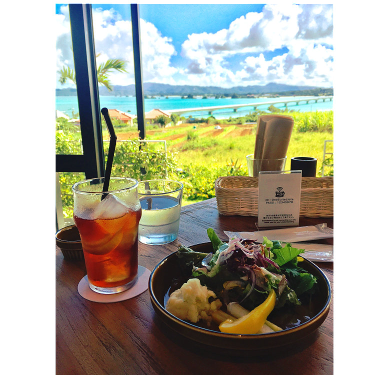 そしてこの古宇利大橋とエメラルドブルーの海を眺めながらお食事できる贅沢なレストランがこちら♫