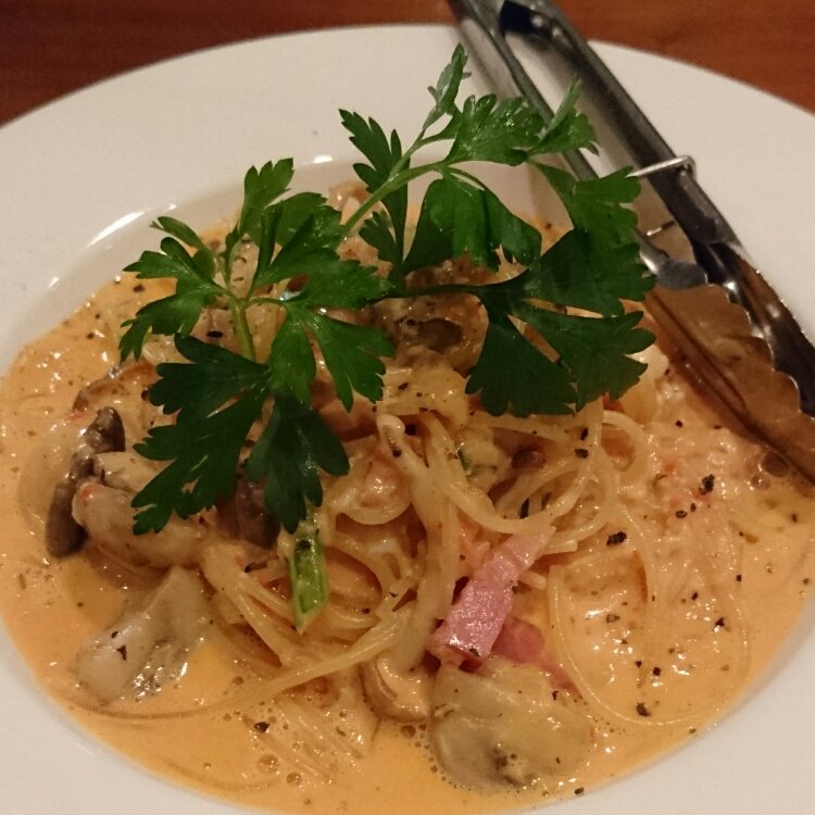 キノコとベーコンとほうれん草のトマクリボーナ😋ディナーセットでサラダ、ピザを食べた後でお腹いっぱいでしたが、ペロッと食べれるくらい美味しかったです(*´-`)これにデザートとドリンクがついて4800円!大満足です😆✨店内もとても素敵でした🎄🐱✴