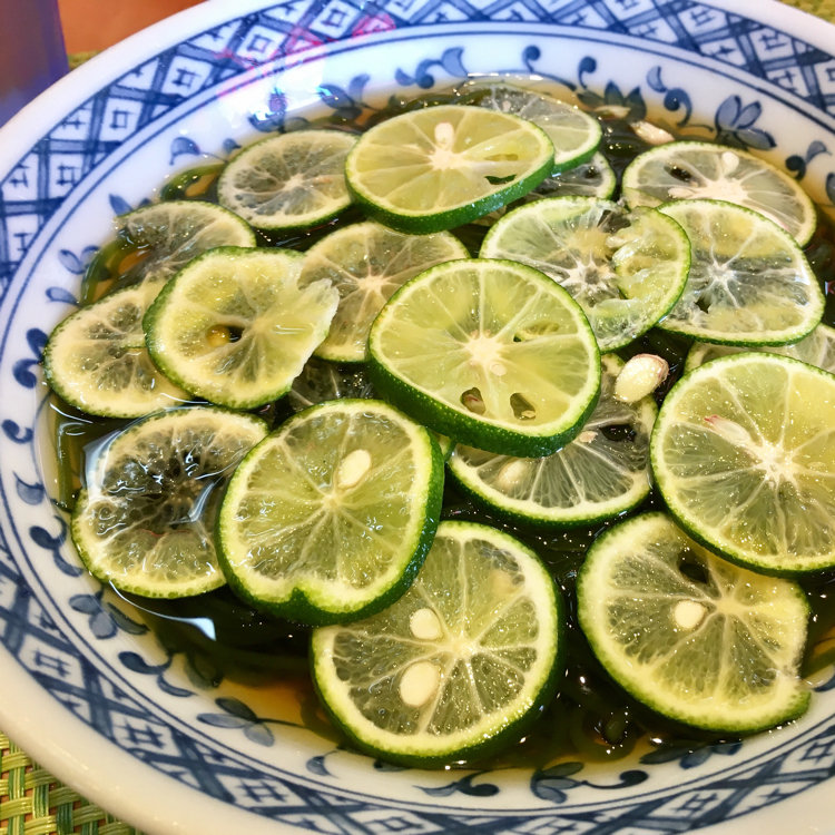 また柴崎亭に来てしまった(*´ω`*) 限定メニューの酢橘そば。麺はコンブ麺でサッパリヘルシー ♯ラーメン ♯つつじヶ丘