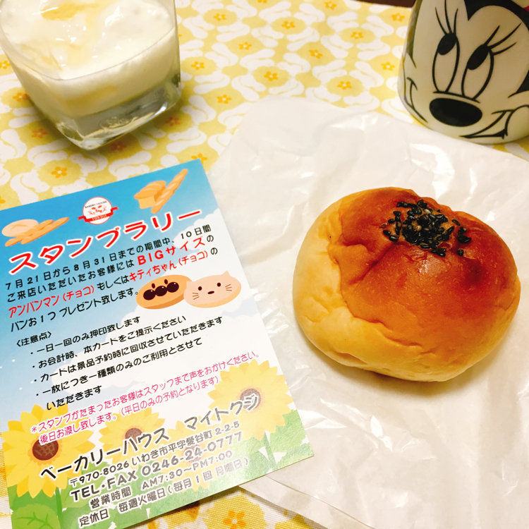 大好きなパン屋さん。ここのパンはなんでも美味しいのですが、今日はシンプルにあんぱんを。訪れたその日から、スタンプラリーが開催されていたようで、これは通うしかないなと思うのでありました。もちもちで美味しいあんぱんです* #いわき#パン#ベーカリーハウスマイトクジ