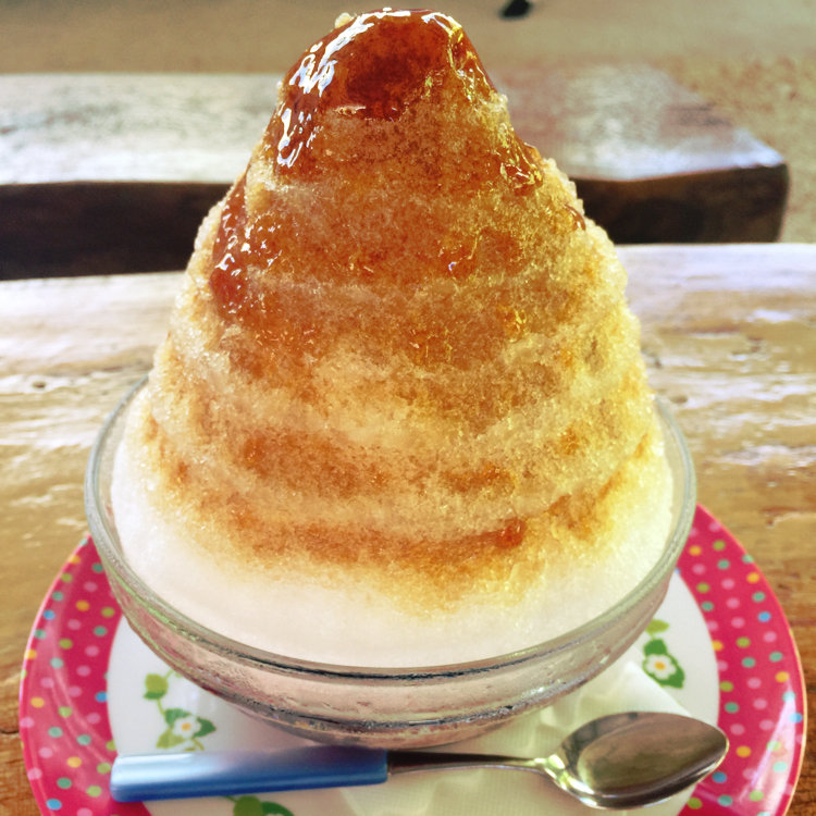 氷ぜんざい 氷がふわっふわ 小豆と白玉入りのかき氷に黒糖蜜たっぷりかけて いっただきまーす🍧