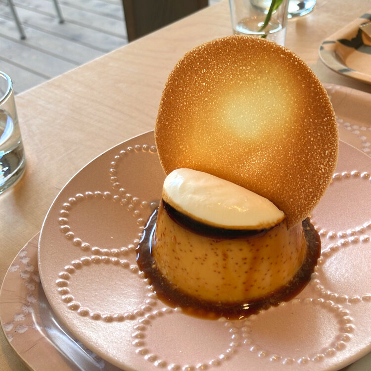 大きなラングドシャが乗ったプリンを注文🍮
