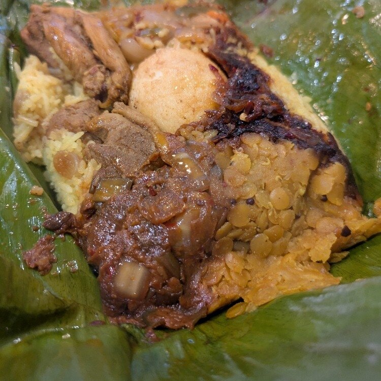 バナナの葉っぱでくるんであります! いい香りです  #スリランカ料理