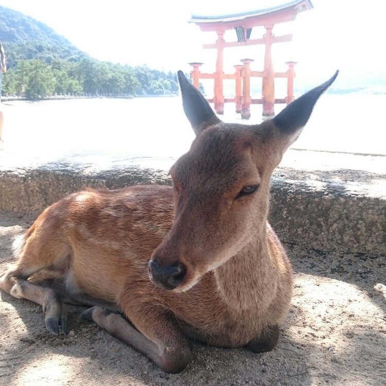 鳥居と鹿さん。 鹿さんも暑そうです☀ #広島県#宮島#鹿#暑い夏#2017