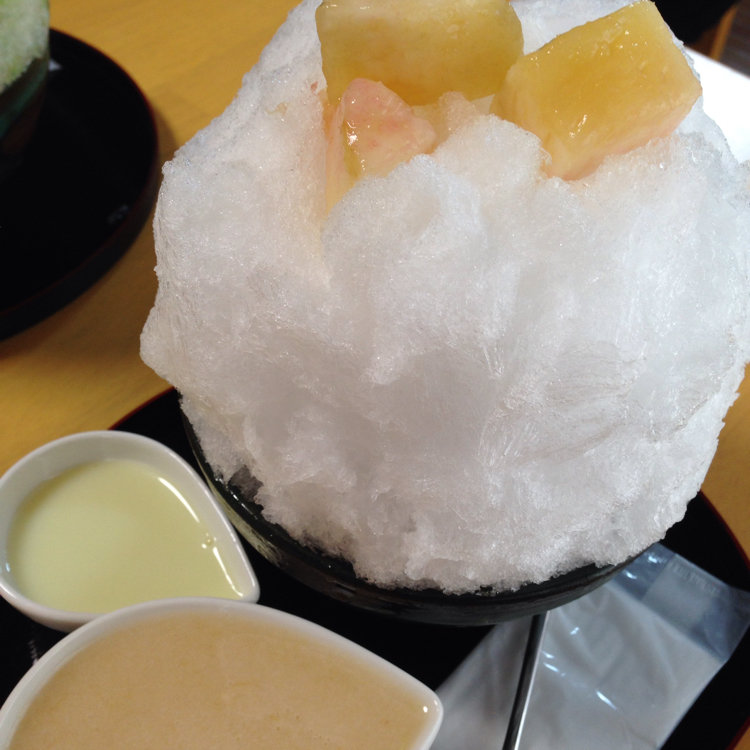 近所でかき氷。 お茶屋さんの『木村園』のかき氷は、日光天然氷の蔵元『三ツ星氷室』の天然氷。 生桃に練乳追加❤︎ #つくばらいふ#かき氷#茨城#つくば#木村園#茶の木村園#練乳好き#桃スイーツ#Ayuのおやつ