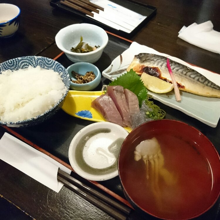 大洗海鮮市場に隣接している海鮮どんぶり亭の「とろサバ焼き定食」🐟柔らかくて脂が乗っててとっっても美味しかったです!カニの汁もシンプルなのに美味しかった(*´-`)