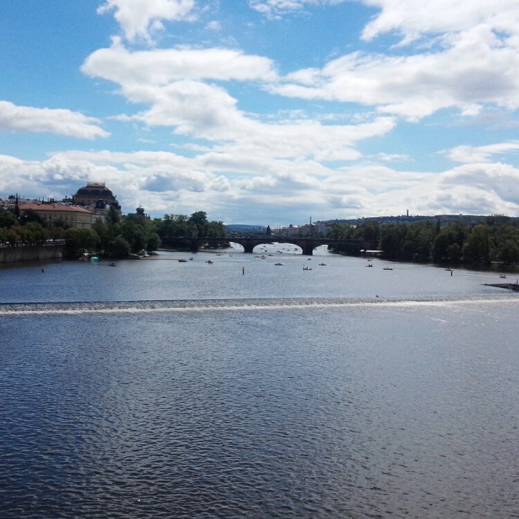 雄大なモルダウ川 カレル橋の上は観光客とパフォーマーでいっぱいだった。中々進まない苛立ちも無くなるぐらいに楽しかった。