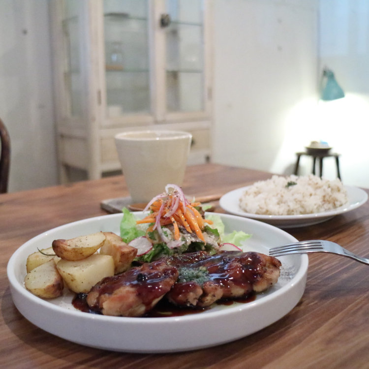 『アオイクカフェ』のプレートランチ♡ 可愛いオシャレ空間でいただくランチは、happyになれます✨😍✨ この日は、チキンソテー〜エスカルゴバター香味醤油ソース〜 スープも具沢山でほっこり美味しい♡ #わたしの街#名古屋#カフェ#ランチ#アオイクカフェ#レトロ