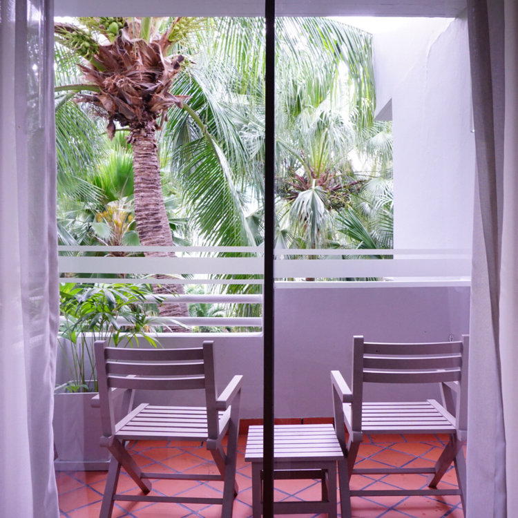 ・ホテルからの眺め。(写真あり)開放感は低めですが、ヤシの木が目線に入って新鮮な角度。
