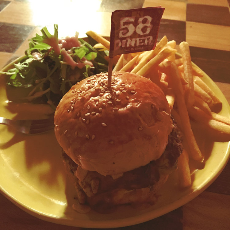 京都、岡崎でのハンバーガー🍔やさん💞 ハンバーガー🍔の種類は、季節限定メニューもあって10種類くらぃ?! ハンバーガー🍔以外にもお肉メニューやサイドメニューもありました🙋✨ あたしは、チーズバーガーのセットをいただきましたが、めっちゃうま💞 ガーリックチップも乗っかってるけど、松の実も乗ってて珍しい😁✨パテもボリュームがあり食べ応えのある一品です🙌🙌🙌