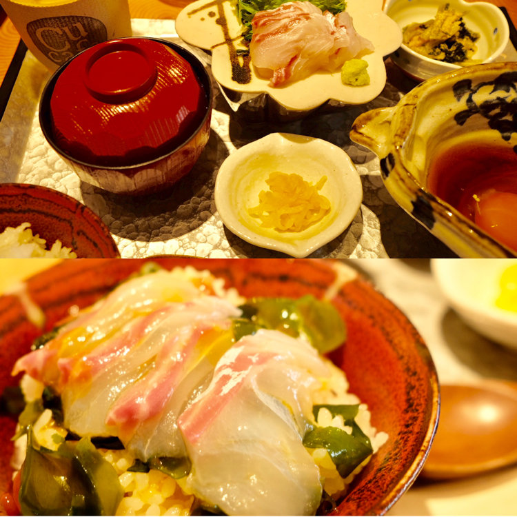 宇和島鯛めし定食 上の写真の右下にある生卵を入れた醤油ダシの中に鯛の切り身と海藻を入れて混ぜて、ご飯にかけて食べる贅沢な卵かけご飯🍚とのこと♬ 鯛の切り身がプリプリして美味しく、 えーっと、ご飯足りないんですけど。。的なことに。。 でも、そんな人も大丈夫ー🙆‍♀️ ご飯一杯おかわり無料‼️ もちろん、おかわりして、美味しくいただきました♬ 期間限定のイチゴのデザート狙いで行ったのですが、まさかの鯛めしを食べられました🌟 私は魚の中で、鯛が一番好きです❣️ 瀬戸内海沿岸に生まれ育って良かったな〜と思うのが、美味しい鯛を食べられることです😊 鯛めしは、私はご飯と一緒に炊き上げる方が好きです💕こちらは、鯛の旨みがご飯にも凝縮されて、、本当に幸せ〜💖と感じます😊また、投稿しますね😉 #CUカフェ #あかがねミュージアム #新居浜 #愛媛 #わたしの街 #冬のごちそう #カフェ #鯛めし #思いがけず、新居浜で、宇和島の鯛めしを食べる♬