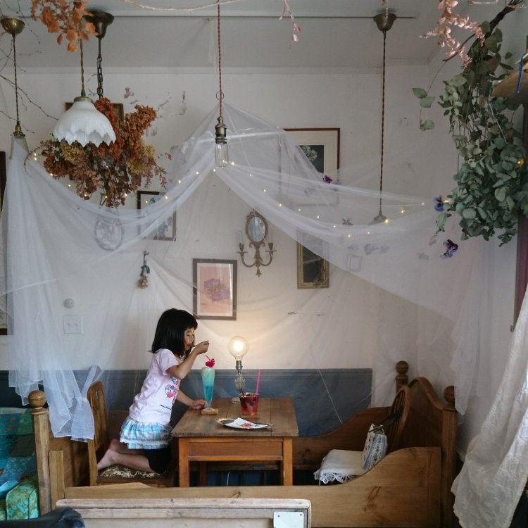 娘と一緒に行った時の写真✨ 娘はクリームソーダ、私はベリーたっぷりのベリーベリーソーダを頂きました❗とっても可愛い空間✨インスタ映え間違いなし❗美味しいし可愛いし♥️ついつい長居したくなっちゃいます🍴 #シャンブルドット