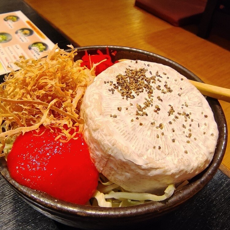 鷺沼 お好み焼き そうすけの カマンベール明太もんじゃ。 カマンベールがどーんとひとつ。 最高よ。 #鷺沼 #お好み焼き #そうすけ