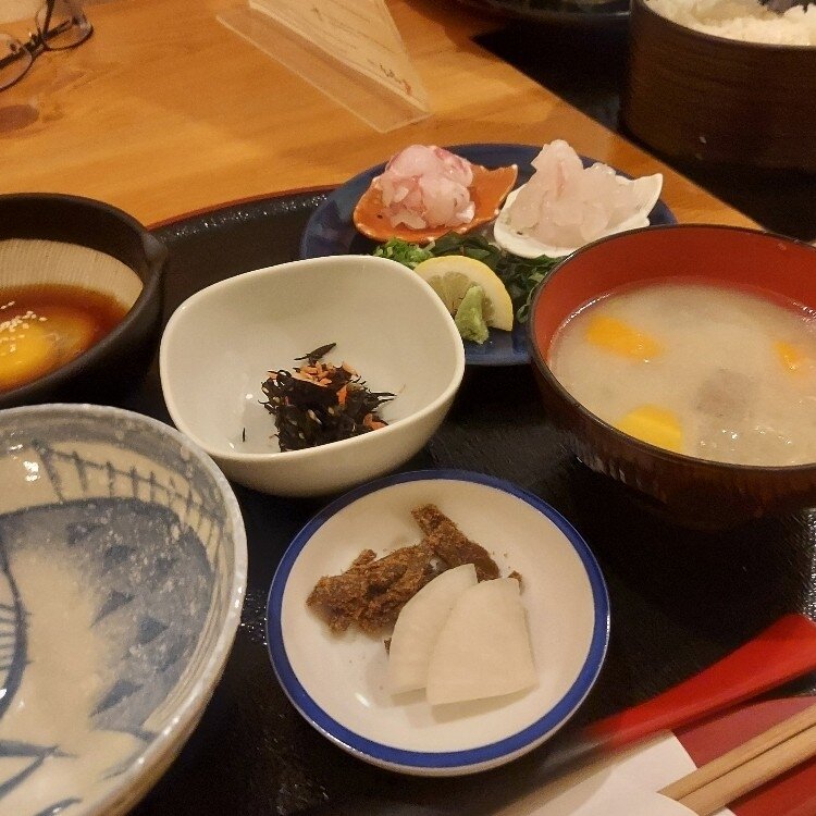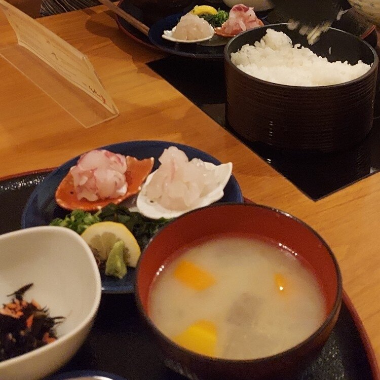 鯛めしをいただきました😃 愛媛の鯛めしには二種類あって、鯛の刺身にタレを浸けてゴマ、卵と一緒に食べる宇和島鯛めしをいただきました🎵赤い方が天然、白い方が養殖鯛だったはず?ですが、味の違いは良く分かりませんでした⁉️😁 鯛めしのそぼろご飯も注文しました😃 マヨネーズ味だったので、残念でした。 普通のそぼろご飯が食べたかった❗ 「宇和島鯛めし丸水」 #私のことりっぷ旅 #松山 #愛媛