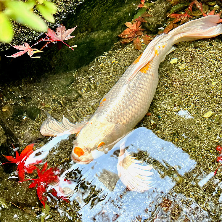 ちょうど裏側が小さな池になっていて太陽がキラキラ✨✨