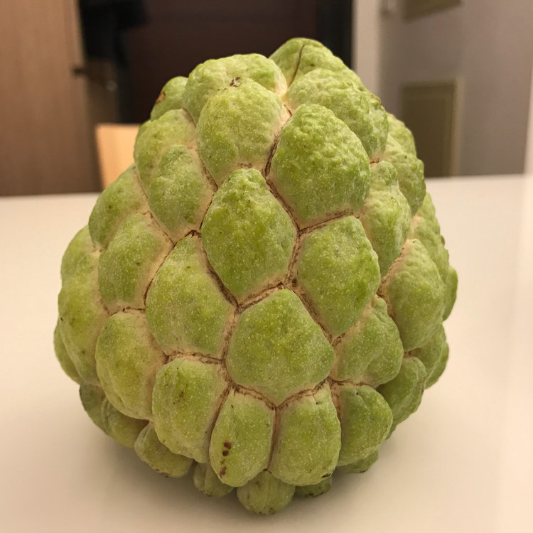 台湾のフルーツ 釈迦頭 どうやって食べるのかわからず、Google大先生に教えてもらった! 熟すまでの間が極端に短く輸送できないのだとか。産地でないと食べられない。 味はただただ甘い!!!森のアイスクリームって言うんだとか。 #台湾 #台北 #フルーツ天国 #釈迦頭