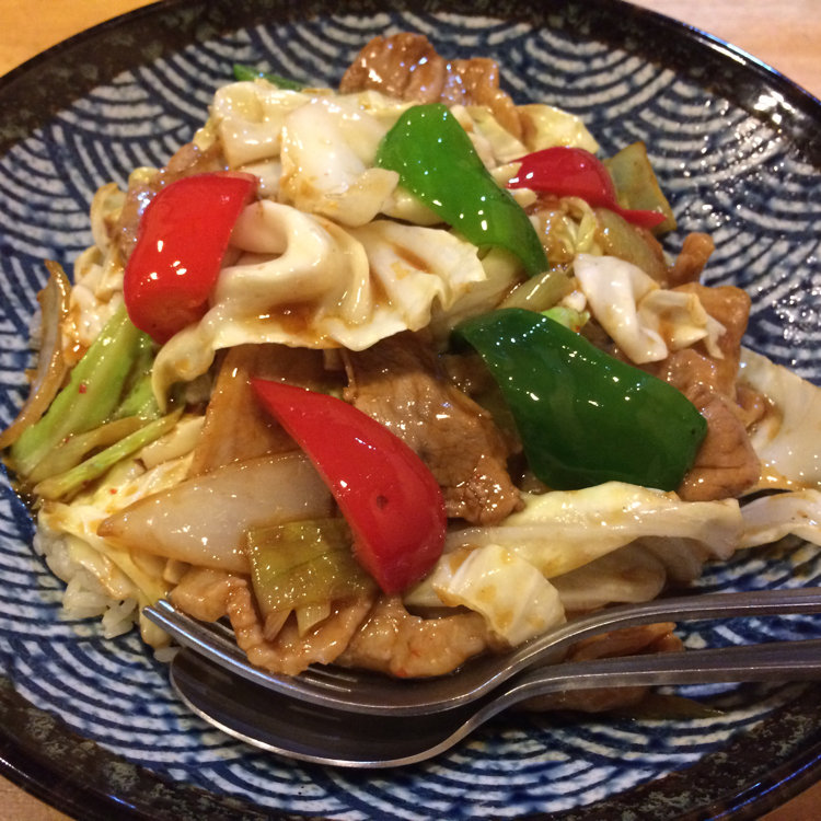 中華家庭料理桃 敷島店 の回鍋肉チャーハン。回鍋肉の下にはたくさんのチャーハンが隠れています。おいしかったです。#山梨