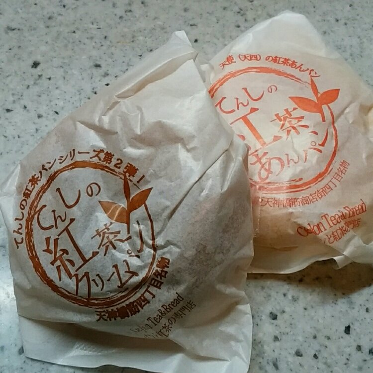 てんしの紅茶クリームパン&あんパンです。紅茶の味がしっかりしてて好き。😋 と言ってたら夫が近くに行ったついでに買ってきてくれました。😆