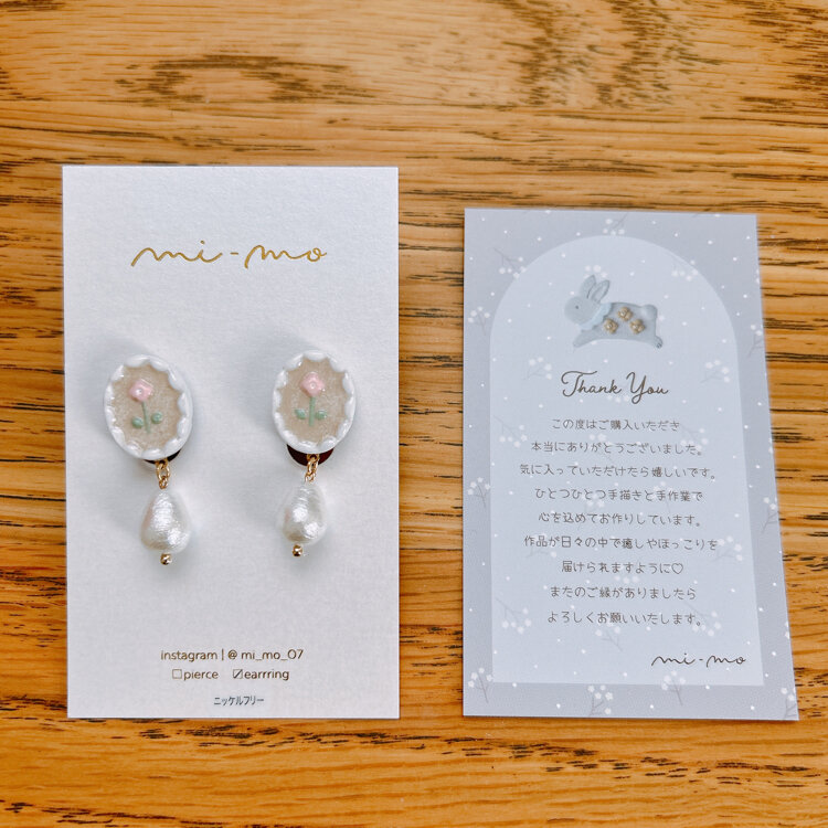 10年ぶりに会う方に誘われてアイテム愛媛のハンドメイドフェアに行きました🌼たくさん人がいてびっくり🫢こういうイベントへ行くのも久々だったので、みんな手作りが大好きなのだなと感じました🫶お財布との相談なので、かなり迷ったのですが、素敵なイヤリングをお迎えしました🤍愛媛の作家さんらしく、買うのを見送ろうかと思ったのですが、可愛すぎてもう一度見に行って迷って迷った末に買いました☺️帰宅後にmi-moさんのインスタを眺めて、やっぱり買っておいて良かった✨と思いました🥰購入したさいにthanksカードまで入れてくださり、すごく素敵なお買い物ができました❣️