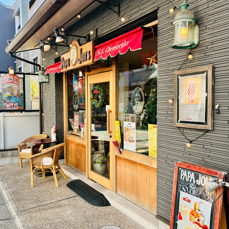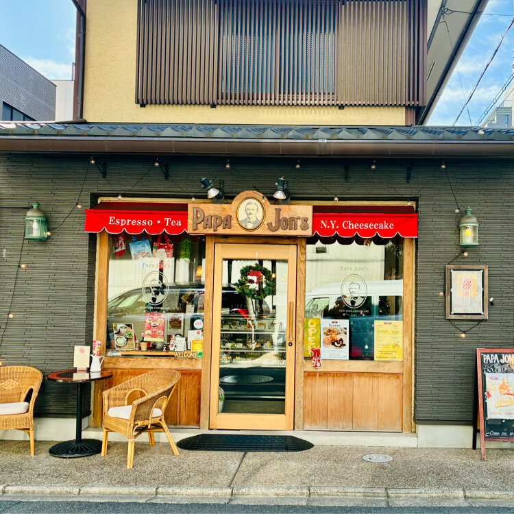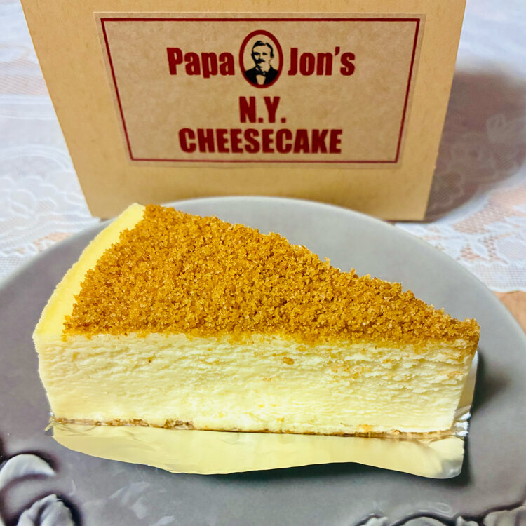 京都のチーズケーキといえばここ!パパジョンズさん🧀 久々に食べたくなってテイクアウトしました。 色々種類はあるんですが、やはり定番のNYチーズケーキを… どっしりしてますがトッピングされたシナモン風味の クランブルが効いていてペロッと食べられます✨ お店も可愛い外観でこぢんまりしていますが イートインでケーキ以外にフードもあり、欧米系の 外国人観光客がチラホラ見えます。 テイクアウトも可愛い箱に入れてもらえてテンション 上がります🎵 すぐに食べない場合は冷凍のNYチーズケーキもあります。 次は店内の素敵な空間でいただきたいです。