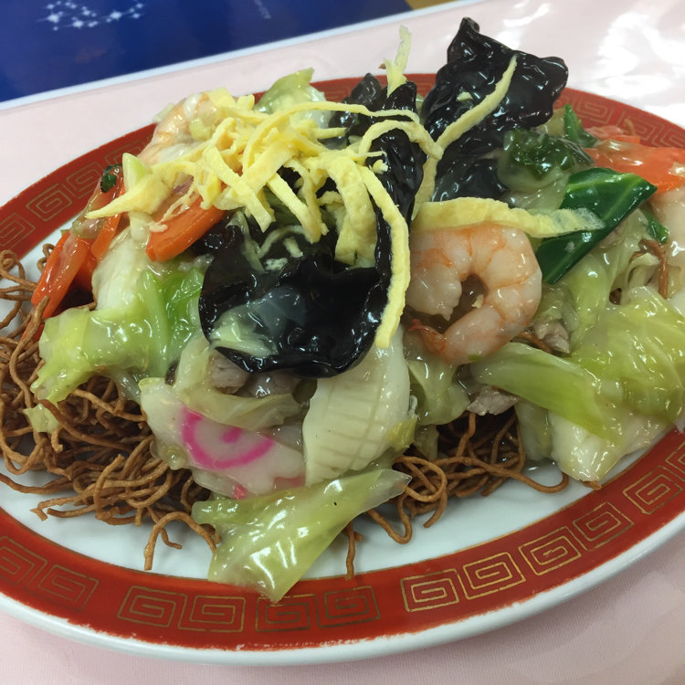 大好き中華② 大正7年創業 老舗の中華 横浜石川町の 奇珍さん こちらは昔から大好き、あんかけかた焼きそば(^^)パリパリ麺に、キクラゲや海老など具だくさんのあんかけが合う!酢をたっぷり目にかけて食べるのが好きです💕♯中華♯横浜
