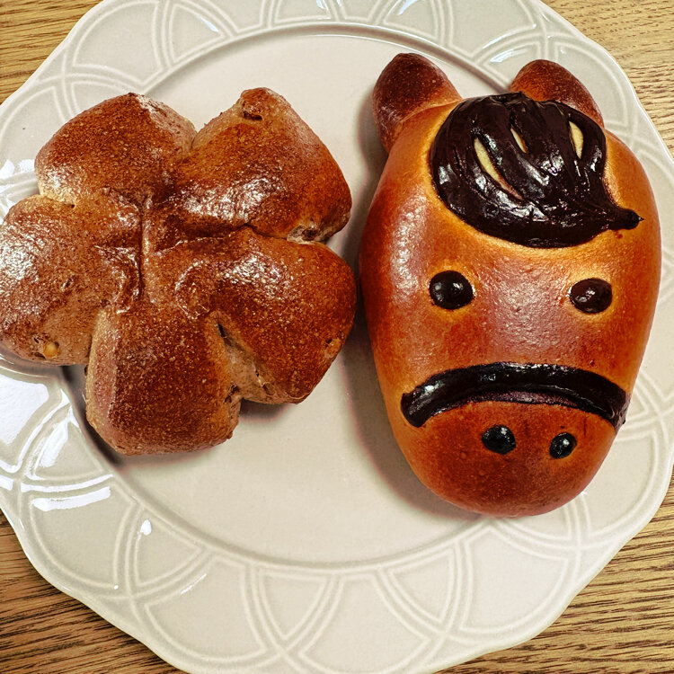 午年限定のクリームパンと定番のくるみパン 美味しくいただきました🐴