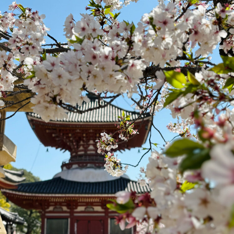 *浄土寺* 桜満開の浄土寺。 白鳩さんと一緒にお花見しました。 すぐ近くを走る電車も桜色。 電車が通ると風が吹いて 桜吹雪も綺麗でした。 #ちいさな列車旅 #私のことりっぷ旅 #尾道さんぽ #尾道 #浄土寺 #多宝塔 #古寺めぐり #尾道桜めぐり