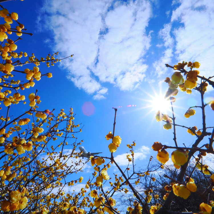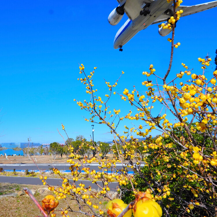 🌼💙蝋梅✖️飛行機✈️💛つばさ公園˙✧˖° 🍋🩵⋆。˚ 今日は春らしい一日でしたので、冬景色の途中ですがお花の登場です。 🌼お花と乗り物シリーズ✈️ 青空にとけこむ飛行機と、透きとおるような黄色の蝋梅。 つばさ公園で出会った春を待つ光景です。 🩵🔎 問題 🔎🩵 5枚目、飛行機はどこにいるでしょう? #開運旅 #豊中つばさ公園 #蝋梅 #ロウバイ #飛行機のある風景 #青空フォト #冬のおでかけ #空と花 #ことりっぷ大阪 #豊中市 #カメラ散歩 #飛行機 #伊丹空港