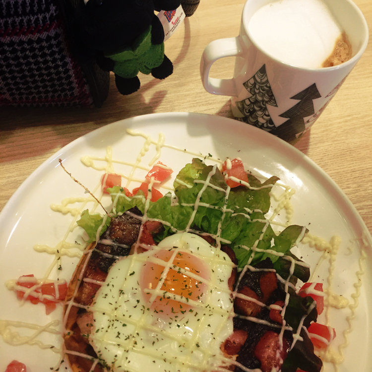 駐車場も広く店内も広いので入りやすいかも。 私はお食事ワッフルを。