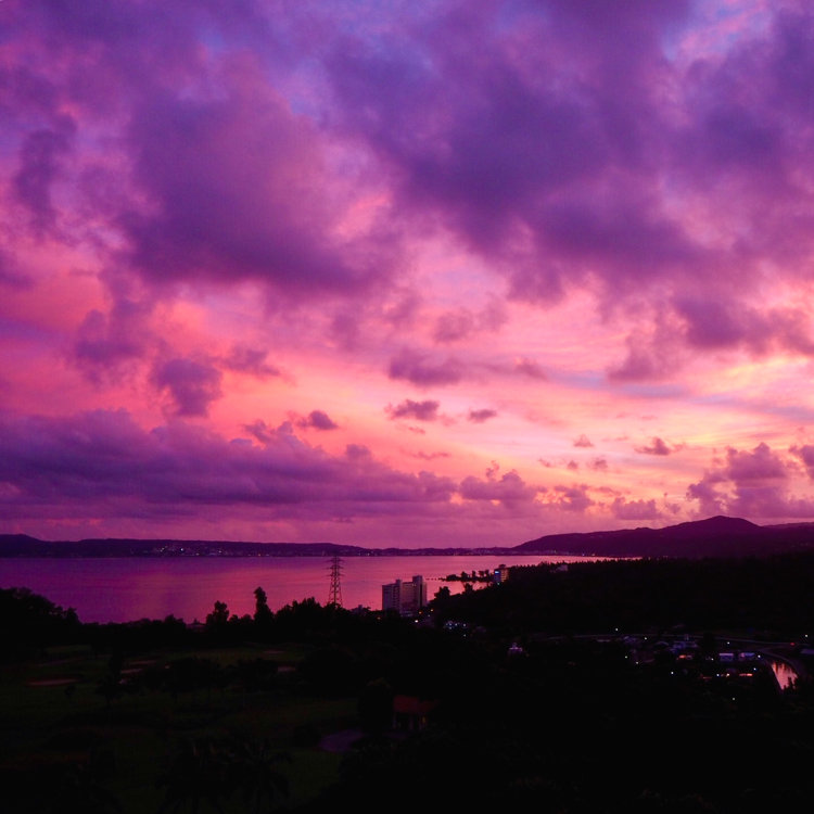 名護湾の朝焼け。いつかいつかと思っていたリッツカールトン。 紫の朝焼けが想い出になった。 #沖縄#名護#名護湾#朝焼け#日の出#とっておきの旅#ことりっぷ沖縄
