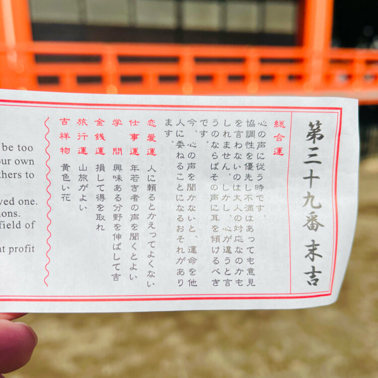 花園神社で花みくじ✨ 可愛らしい筒に入ってるおみくじです♡ 色々な彩りとお花のデザインがありましたが 桜の花みくじを選びました🌸 数年ぶりに引いたおみくじは末吉。 総合運『心の声に従う時』ふむふむ、なるほど。 旅行運『山脈がよい』ハードル高っ💦 吉祥物『黄色い花』ミモザかな?💛 久しぶりのおみくじが楽しくてひとり言多し(笑) 境内は梅も美しく咲き始め春が近づいてきてます。 #花園神社 #花みくじ #ルージュのよう #ご縁めぐり #梅 #平日ららら #ひとりさんぽ部